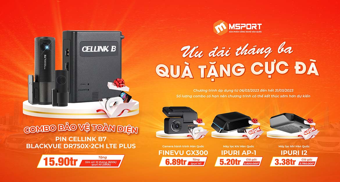 Khuyến mãi siêu hấp dẫn khi mua Combo bảo vệ toàn diện dành cho ô tô với giá trị quà tặng lên đến 1,200,000đ, diễn ra từ ngày 6/3 đến ngày 31/3/2023.