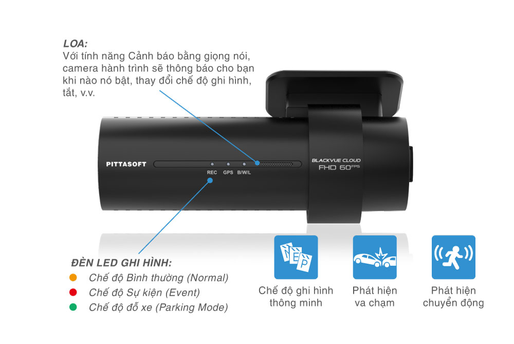 - Gia tốc kế (G-sensor): Phát hiện va chạm và tự động gắn thẻ video sự kiện.