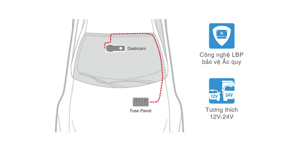 - Tích hợp Chế độ Parking Mode với nguồn đấu trực tiếp và công nghệ LBP bảo vệ ắc-quy.