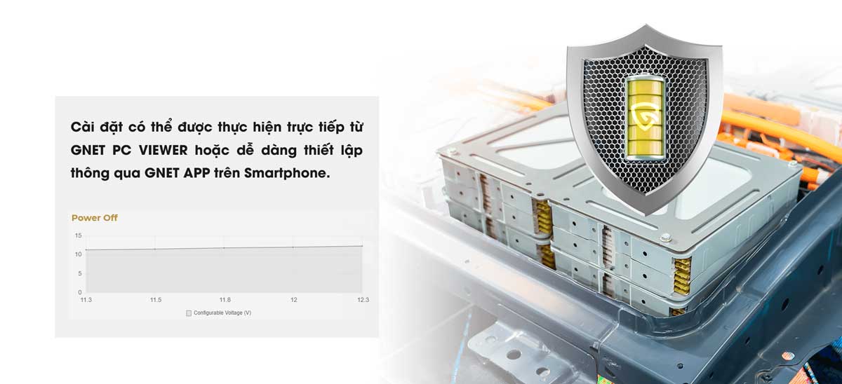 Chức năng Bảo vệ an toàn thông minh tự động tắt nguồn khi điện áp giảm xuống định mức đã cài đặt 12 vol.
