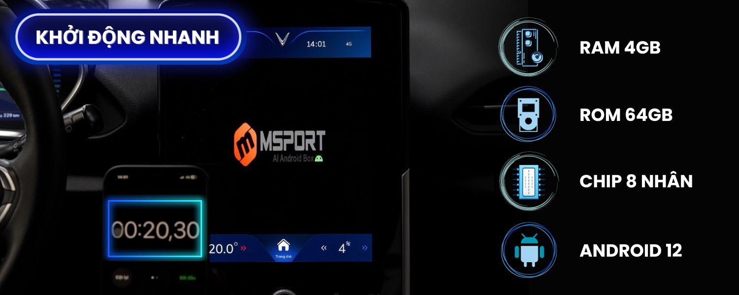MSPORT AI ANDROID BOX CHO XE ĐIỆN VINFAST (4x64GB)