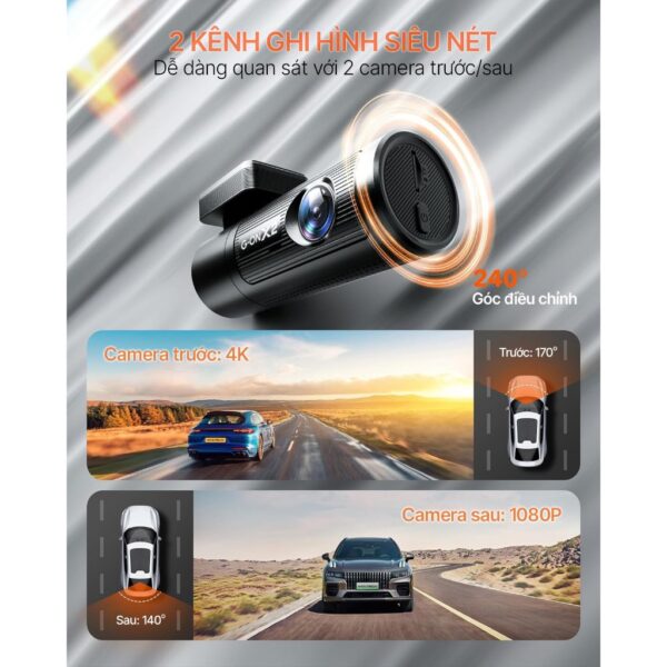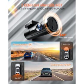 Camera: 2 Camera trước/sau Thẻ nhớ: MicroSD 64GB (Upto 128GB) Độ phân giải: Trước: 4K UHD @ 30fps - Sau: Full HD @ 30fps Wi-Fi: Wi-Fi 2.4G Video Codec: H.264 Application: : iOS/Android Frequency: 50Hz/60Hz Operation Temperature: -20°C ~ 70°C Chống rung: Có Công nghệ ghi đêm: Night Vision Ghi hình vòng lập: Có Parking…